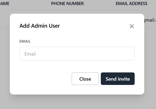 To add a new admin to your system, simply enter their email address and click Send Invite.